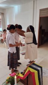 A celebração reuniu Irmãs e Postulantes, que juntos recordaram a vida de Teresa de Saldanha – mulher de fé inabalável, coragem profética e amor incansável pelos mais pobres. O seu testemunho continua a inspirar a missão das Irmãs em Timor-Leste, onde o serviço educativo, pastoral e social se faz com simplicidade, dedicação e espírito de família.