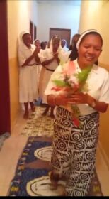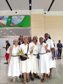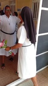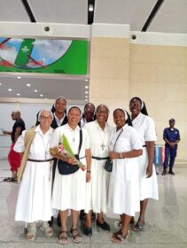 A chegada a Angola foi um momento de profunda emoção. No Aeroporto, aguardavam-na a Madre Provincial – Ir. Maria Manuela Nacandumbo, e cinco Irmãs – Ir. Antónia, Ir. Aurora, Ir. Margarida, Ir. Ana e Ir. Luana, numa receção calorosa que dissipou qualquer traço de cansaço. Ao chegar à comunidade Nossa Senhora da Paz, Km 9 – Viana, Casa de Formação, foi surpreendida por um acolhimento ainda mais tocante: as Noviças, Postulantes e a Irmã responsável entoaram um cântico de boas-vindas que, nas palavras da própria Irmã Ediana, “parecia o canto dos Anjos”.