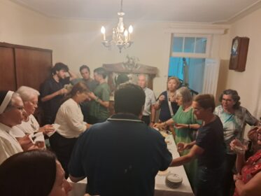 Atualmente somos apenas três Irmãs, mas dentro destes dias, vem uma Irmã mais jovem, durante seis meses fazer a sua experiência missionária junto de nós. E isso também é motivo de ação de graças. A comunidade está organizada, de forma que cada Irmã realize a missão, que lhe está confiada.