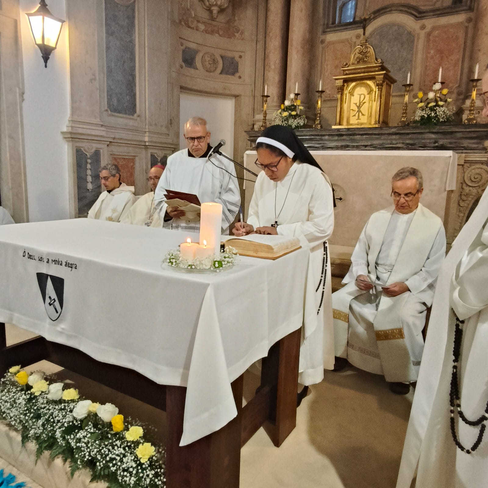 Há 133 anos, no dia 2 de outubro de 1892, Teresa de Saldanha fez a sua profissão perpétua, na capela de São José, em São Domingos de Benfica (Memória das Datas pg. 48). Hoje, 13 de novembro de 2025, no memo local, as duas Irmãs fizeram a sua profissão perpétua.